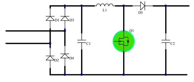 PFC(功率因數(shù)校正)拓?fù)涑R姷墓ぷ髂J接蠧CM電流連續(xù)型、DCM不連續(xù)型和CRM臨界型三種,PFC拓?fù)鋵OS管的要求比較高,在保證系統(tǒng)效率和溫升的條件下,要盡可能的提升系統(tǒng)穩(wěn)定性。PFC拓?fù)涞目刂骗h(huán)路速度比較慢,為了平滑100Hz-120Hz的交流整流紋波,PFC拓?fù)涞姆磻?yīng)時(shí)間必須要達(dá)到數(shù)10ms。如果沒有對控制電路和IC進(jìn)行專門優(yōu)化,PFC拓?fù)湓趩舆^程中往往會產(chǎn)生很大的沖擊電流,沖擊電流可達(dá)正常工作時(shí)的5-10倍,尤其是在反復(fù)的開關(guān)機(jī)過程中,更是對MOS管有著更加嚴(yán)苛的考驗(yàn)。PFC拓?fù)渲械腗OS管跨接在高壓與地之間,在進(jìn)行安規(guī)測試時(shí),MOS管的EAS能力也是評估其可靠性的重要參考。因此,PFC電路在選擇MOS管時(shí),需要著重考慮MOS管的開關(guān)特性(Ciss)、EAS能力、浪涌抵抗能力和靜電防護(hù)能力。