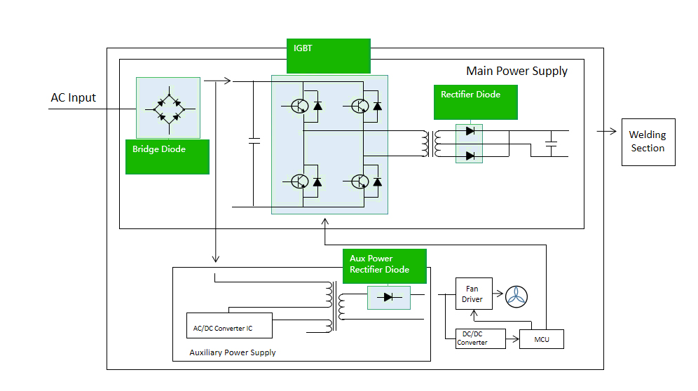 用逆變技術(shù)的弧焊電源,“逆變”與“整流”是兩個(gè)相反的概念。整流是把交流電變換為直流電的過(guò)程,而逆變則是把直流電改變?yōu)榻涣麟姷倪^(guò)程,采用逆變技術(shù)的弧焊電源稱為“逆變焊機(jī)”。逆變焊割設(shè)備的工作過(guò)程,是將三相或單相 50Hz 工頻交流電整流、濾波后得到一個(gè)較平滑的直流電,由 IGBT或場(chǎng)效應(yīng)管組成的逆變電路將該直流電變?yōu)?5~100kHz 的交流電,經(jīng)中頻主變壓器降壓后,再次整流濾波獲得平穩(wěn)的直流輸出焊接電流(或再次逆變輸出所需頻率的交流電)。逆變焊割設(shè)備的控制電路由給定電路和驅(qū)動(dòng)電路等組成,通過(guò)對(duì)電壓、電流信號(hào)的回饋進(jìn)行處理,實(shí)現(xiàn)整機(jī)循環(huán)控制,采用脈寬調(diào)制PWM 為核心的控制技術(shù),從而獲得快速脈寬調(diào)制的恒流特性和優(yōu)異的焊割工藝效果。