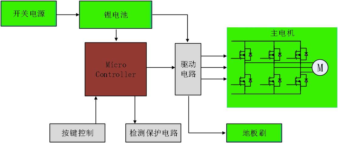 吸塵器的動(dòng)力部分主要有吸塵器電機(jī)和無刷電機(jī)控制器。吸塵器的風(fēng)機(jī)葉輪在電動(dòng)機(jī)高速驅(qū)動(dòng)下,將葉輪中的空氣快速排除風(fēng)機(jī),同時(shí)使吸塵部分空氣不斷地補(bǔ)充進(jìn)風(fēng)機(jī),配合掃塵刷將粉塵臟污吸入腔體。便攜式吸塵器的功率一般為250W以下。